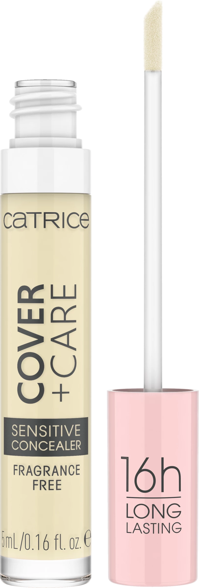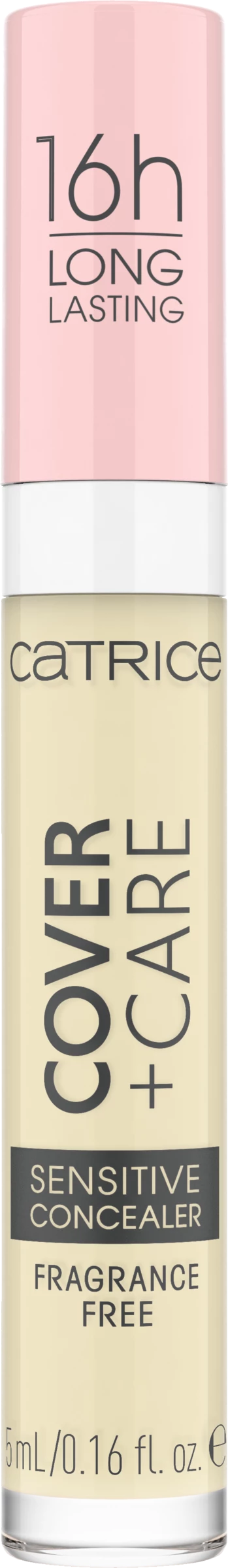 Der Cover + Care Sensitive Concealer überzeugt mit seiner mittleren, aufbaubaren Deckkraft und natürlich-mattem Finish. Die wasserfeste Textur hält bis zu 16h lang, ist parfümfrei und für sensible Haut geeignet – die Verträglichkeit auf empfindlicher Haut wurde dermatologisch bestätigt. Außerdem ist die Formulierung mit beruhigender Kamille angereichert. Der flüssige Concealer lässt sich leicht auftragen und verblenden. Wasserfester, parfümfreier Concealer mit 16h Halt für sensible Haut.